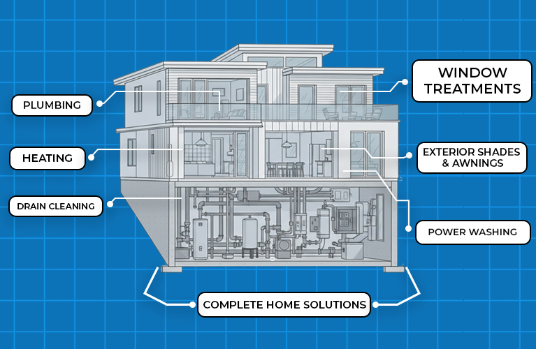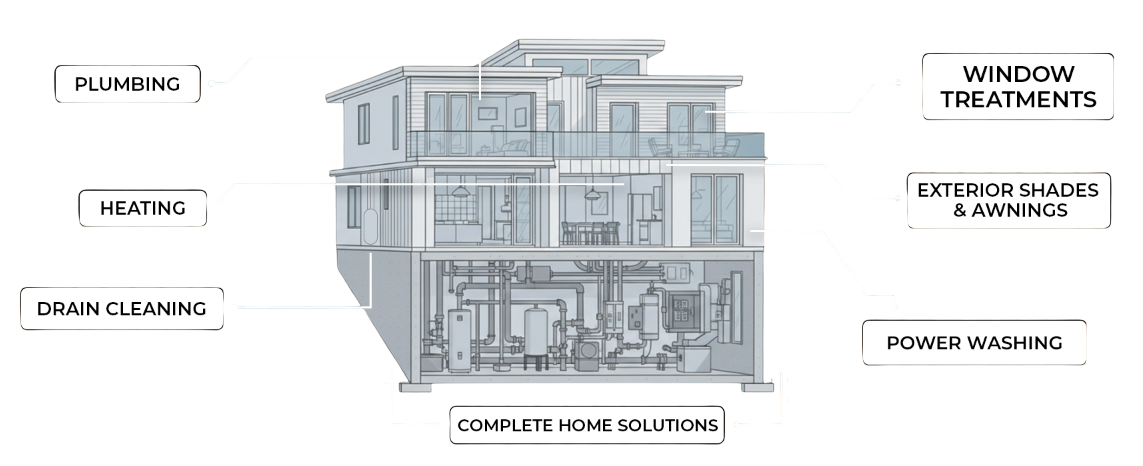 We deliver complete home solutions from custom window treatments and exterior cleaning services to complete plumbing solutions and drain cleaning. We’re here to enhance and protect your home without the headache.
