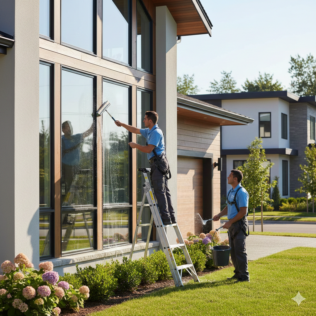 Our technicians are trained to handle all window types, including double hung, casement, sliding, bay, and specialty windows. We use ladders, extension poles, and safety equipment to access high and hard to reach areas safely.
